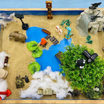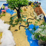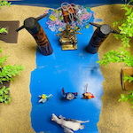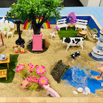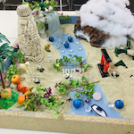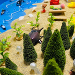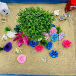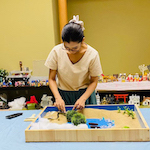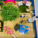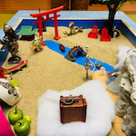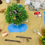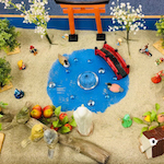 箱庭セラピーは、砂の入った箱の中に、人、動植物、建物など様々なミニチュアを置いて、何かを表現したり遊ぶことを通して行う心理療法です。